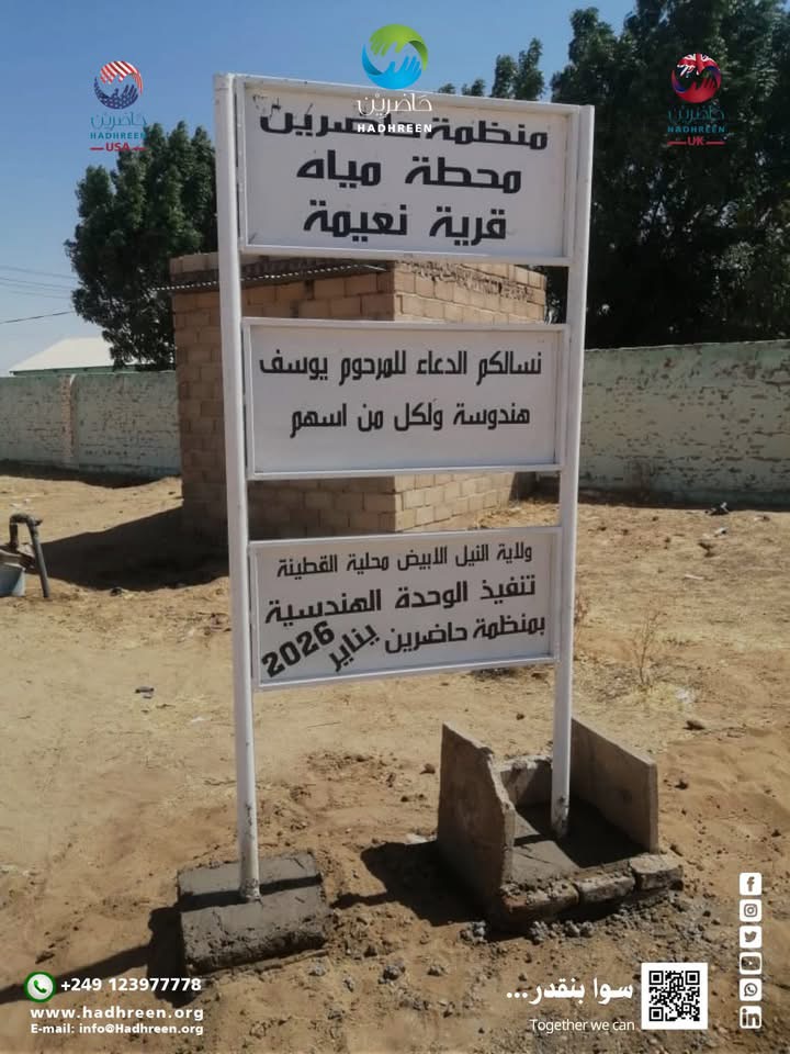 Thanks to a generous contribution from Hadhreen’s supporters, the rehabilitation of the water station in Al-Naeema village, Al-Qatina locality, White Nile State, has been completed.